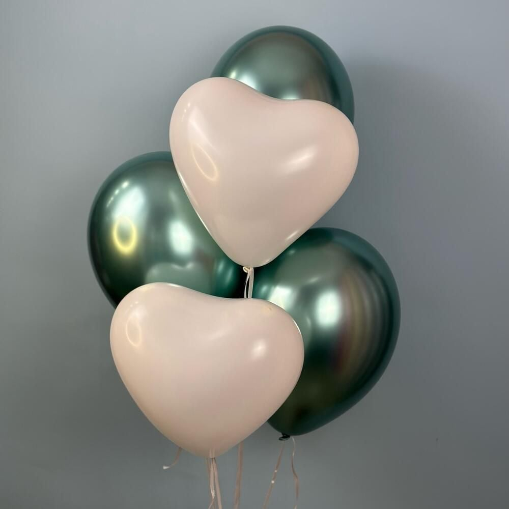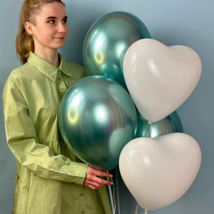 Baloane Verzi Chrome și Inimi Albe cu Heliu