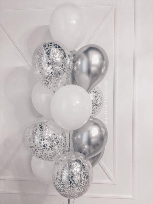 • 12 baloane latex albe, argintii și transparente