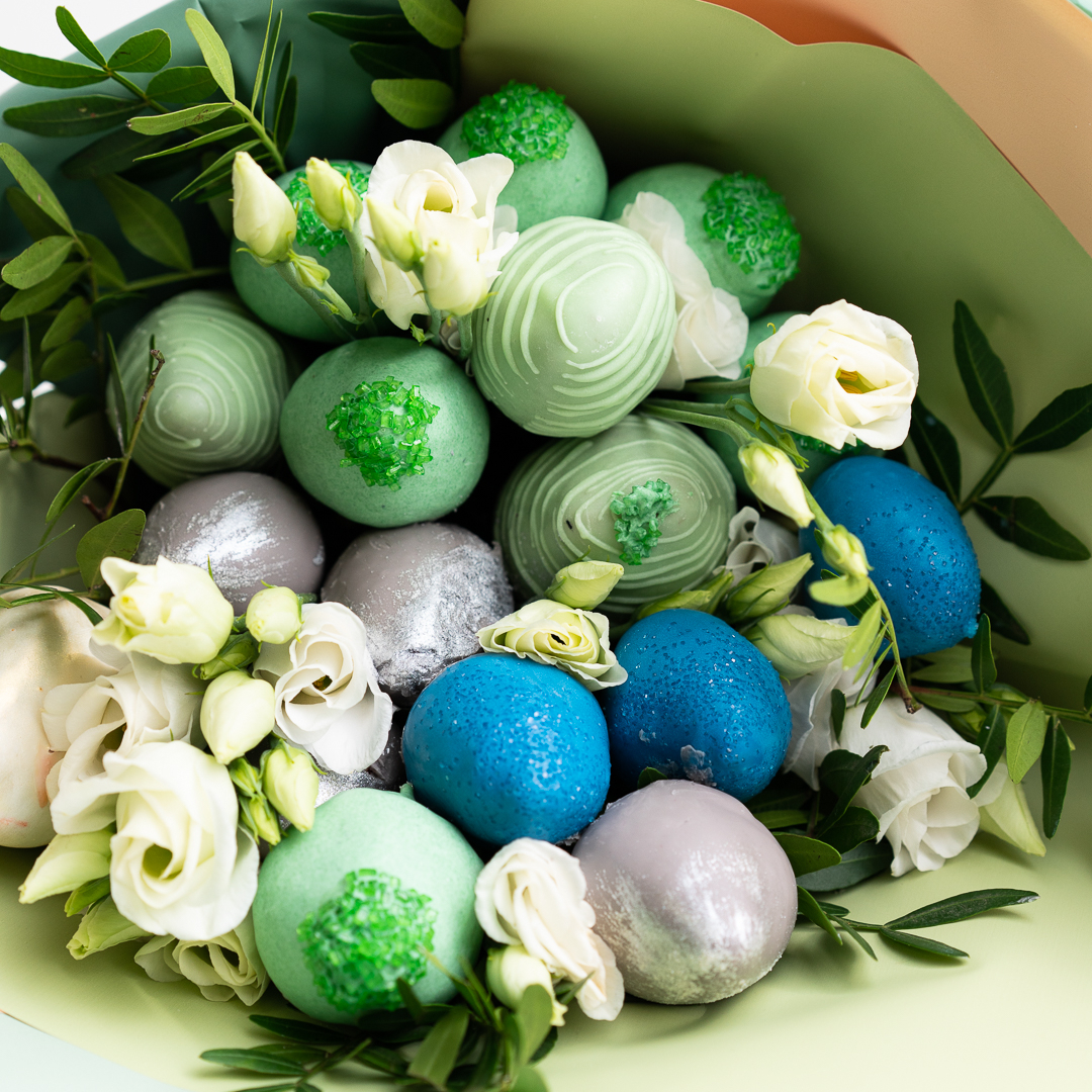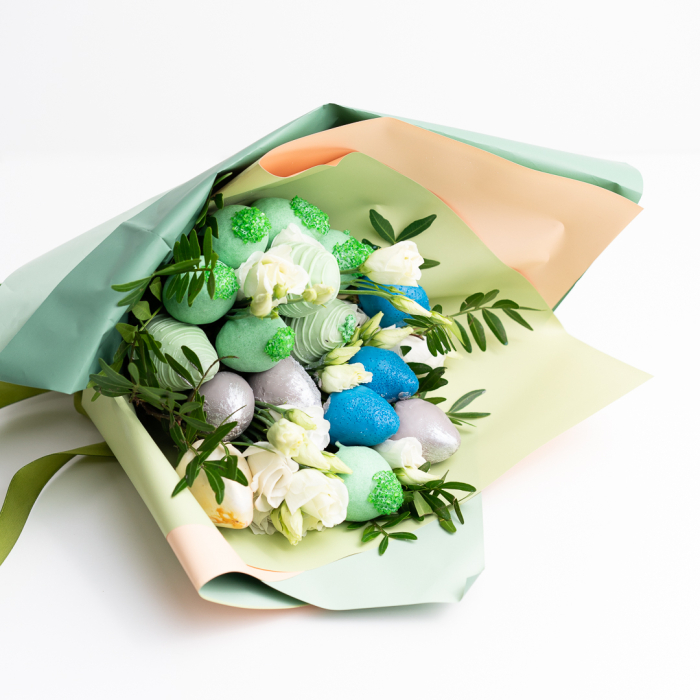 Oferă un buchet ce surprinde magia primăverii în splendoarea ei! Buchetul Easter Joy este realizat din flori de primăvară și căpșune învelite în cea mai bună ciocolată belgiană albă cu lapte. Notă: buchetele pot fi personalizate în funcție de preferințe.
