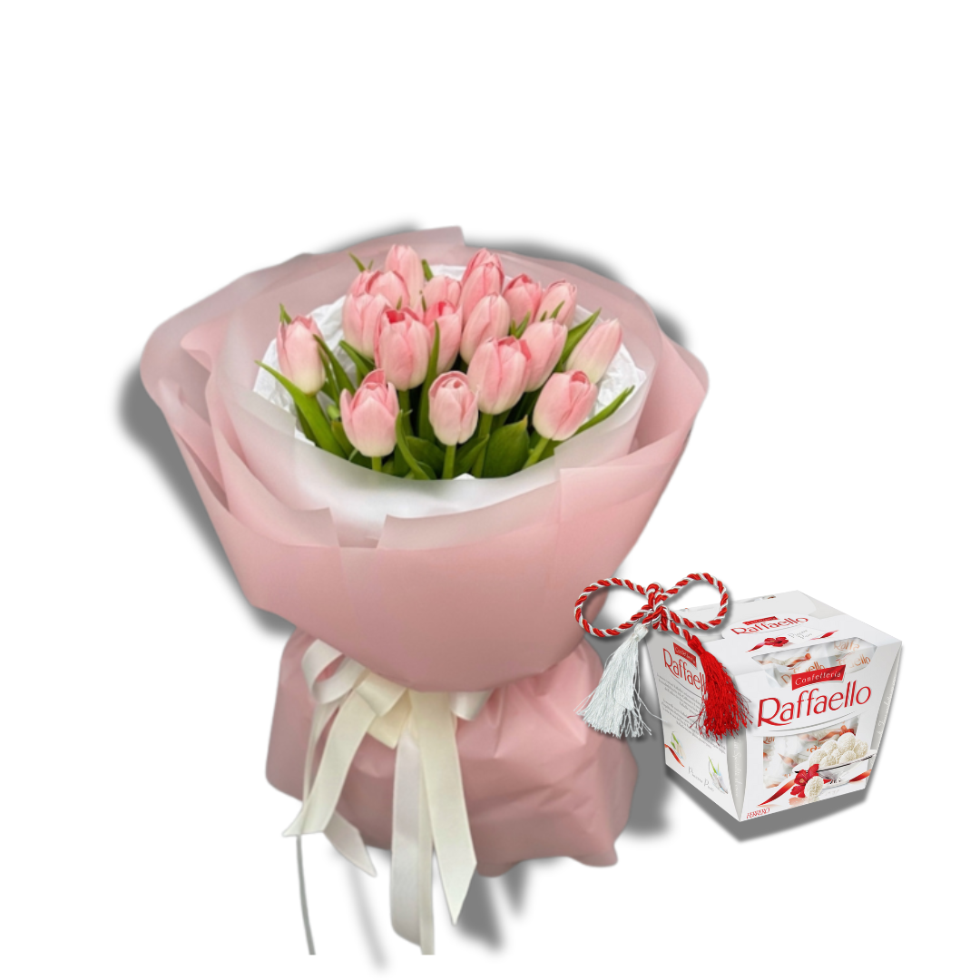 Surpriză la Domiciliu cu Lalele, Mărțișor și Bomboane Raffaello