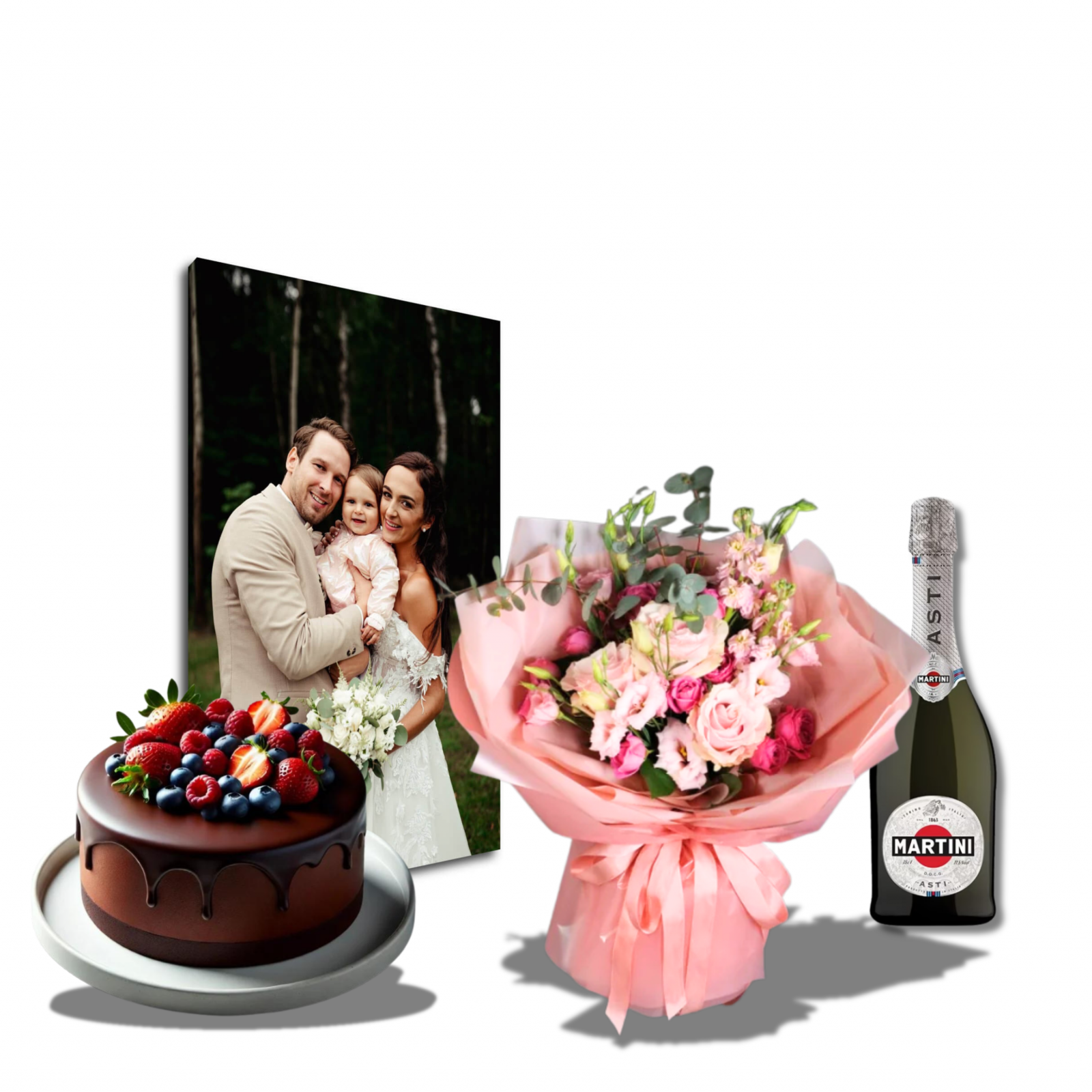 Surpriză la Domiciliu cu Tablou, Tort, Flori și Șampanie