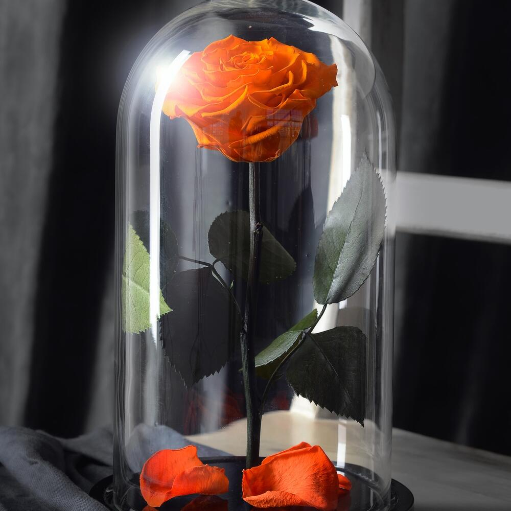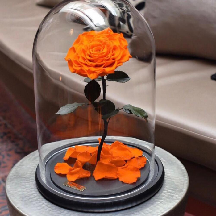 Trandafir Criogenat Portocaliu în Cupolă de Sticlă